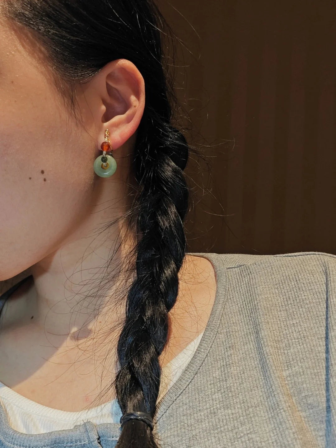 Get these Chinoiserie Natural Jade Hoop Earrings to add a touch of perfection to your jewelry collection. Handmade with traditional Chinese jade, these earrings showcase the classic circle symbol with a twist. Good quality and unique design make these a must-have for any fashion-forward individual.