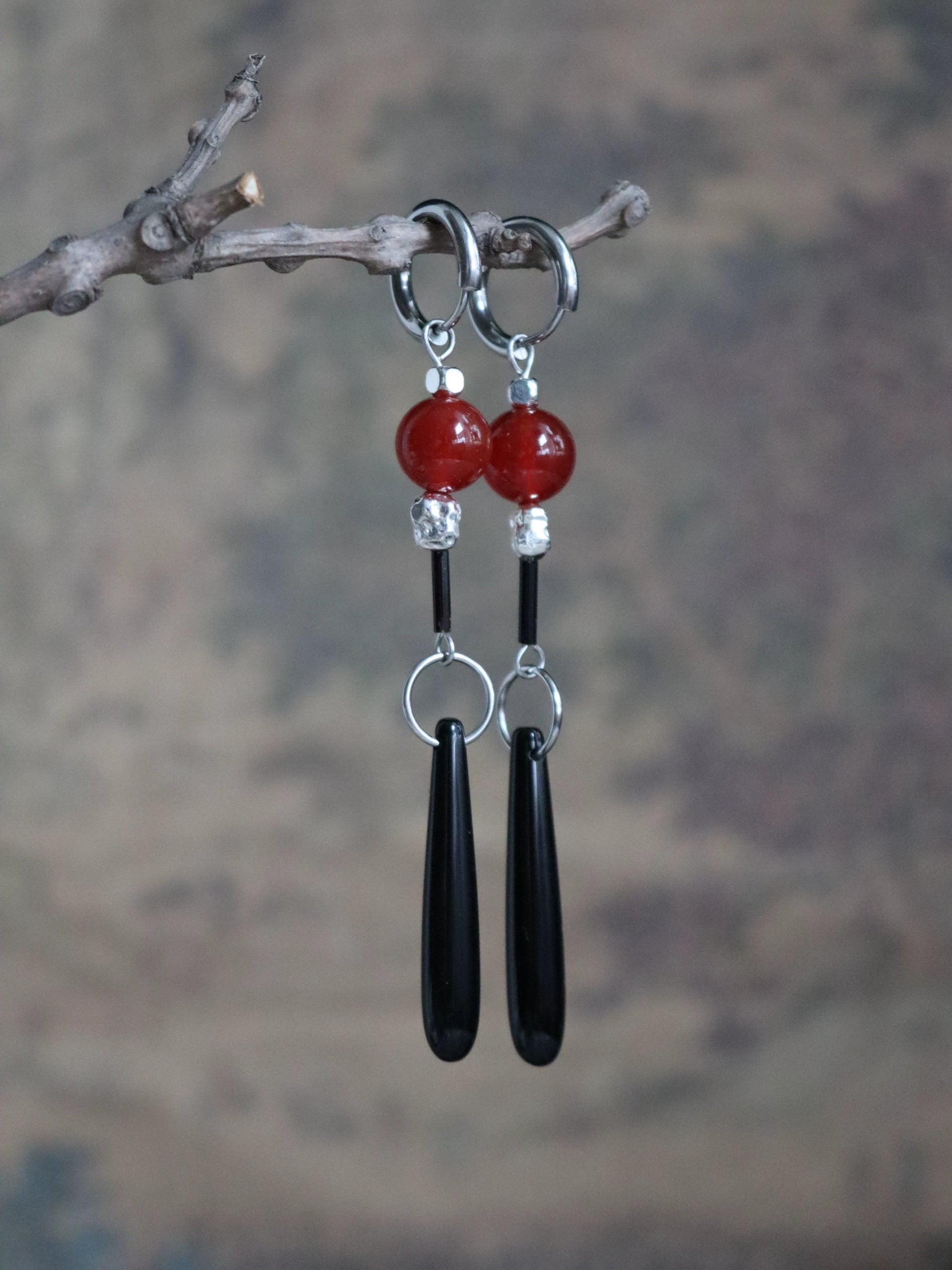 These Chinoiserie Red and Black Agate Drop Earrings pair bold red and deep black agate for a striking, harmonious contrast. The sleek drop silhouette adds elegance and a touch of traditional chinoiserie charm. Eye-catching yet refined, they’re perfect for elevating everyday outfits or gifting to someone who loves artful, culturally inspired jewelry.