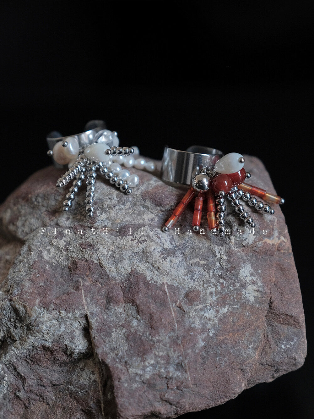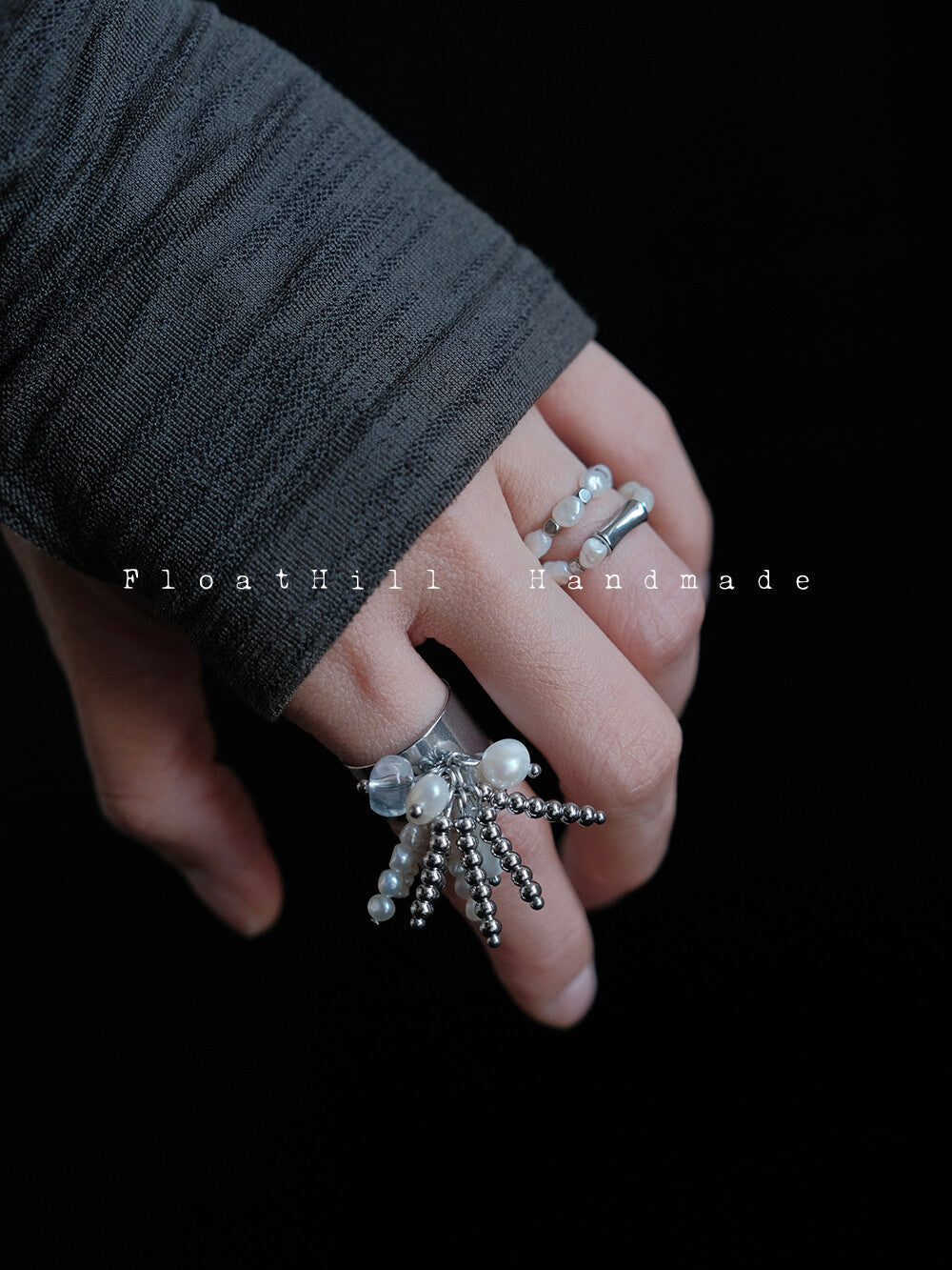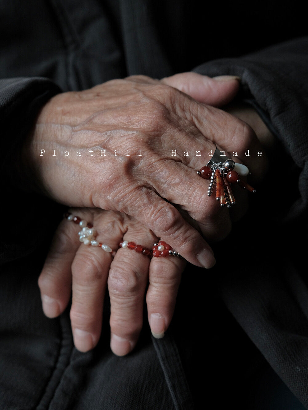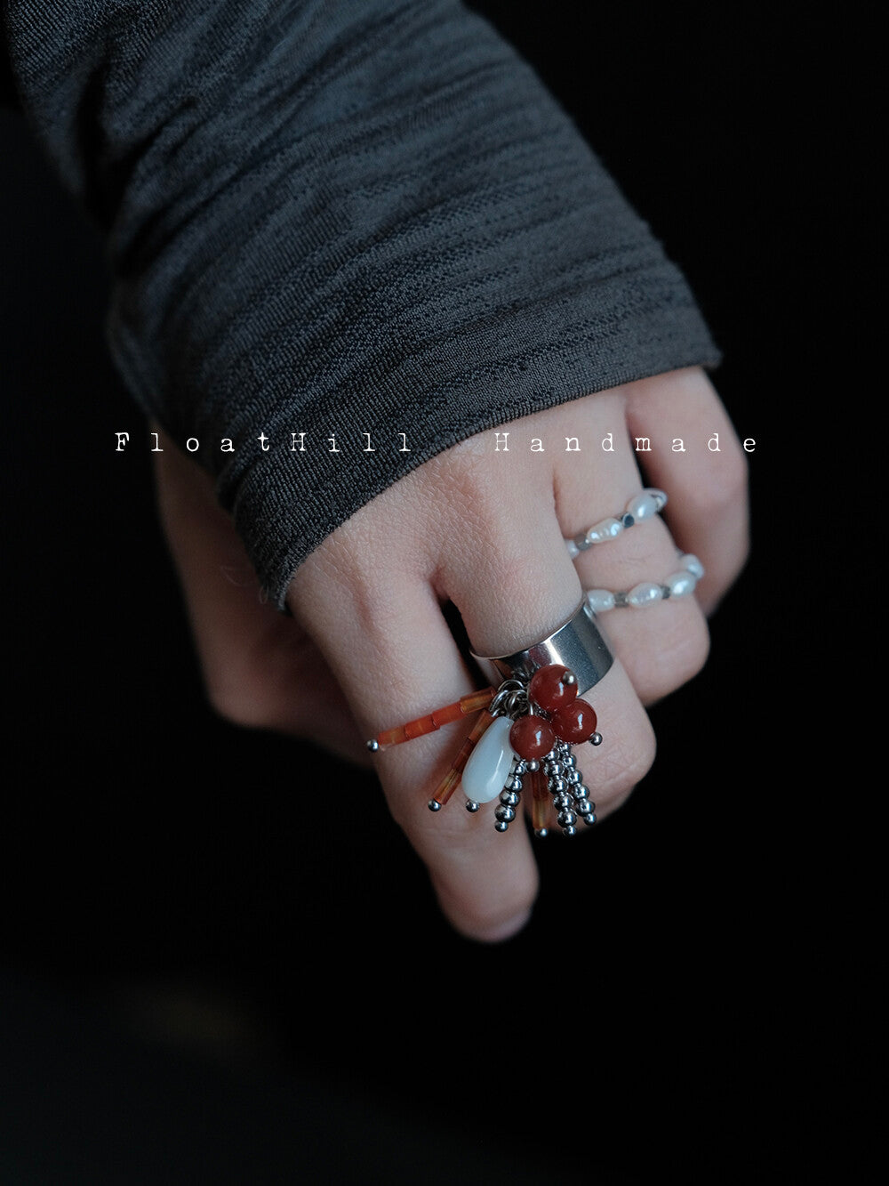 Inspired by the weighted fullness of ripe fruit, this open‑end ring duo is sculpted by hand in two distinct harvest‑inspired variations. The red edition strings together deep red carnelian beads with sleek titanium‑steel accents, evoking richness and warmth. The white edition we luminous freshwater pearls with the same metallic gleam, suggesting purity and abundance. Each ring curves like a laden branch, adjustable to various finger sizes—a wearable ode to growth, harvest, and hand‑crafted poetry in the color of your choosing.
