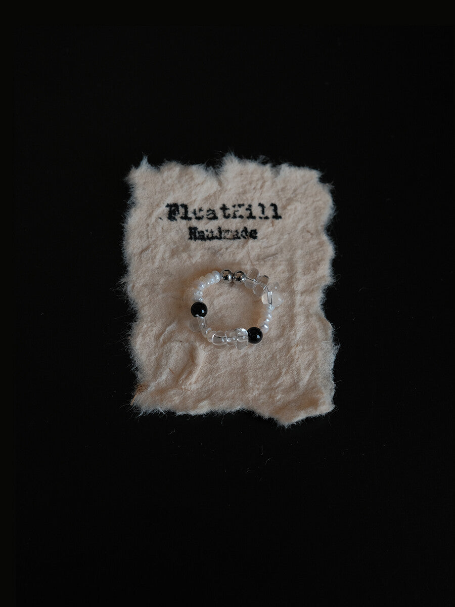 Inspired by the soft arc of a crescent moon, this stretch ring layers irregular baroque pearls with minimalist beads in cool, muted tones, creating a textured, organic wrap around the finger. The pearls' soft glow and the ring's gentle elasticity offer a comfortable fit and a sense of effortless elegance. Wear one or stack several—a quiet ode to lunar light and fluid form.