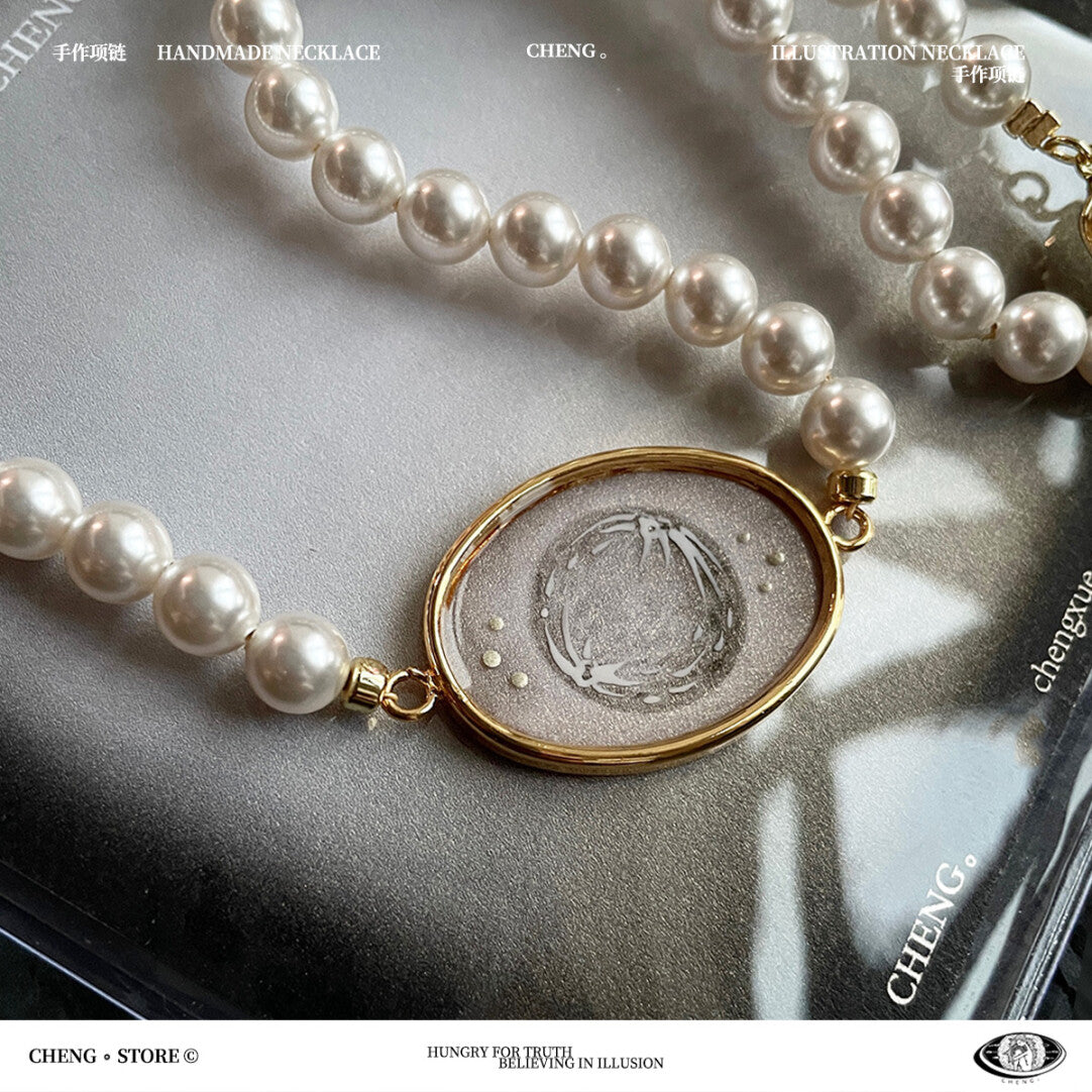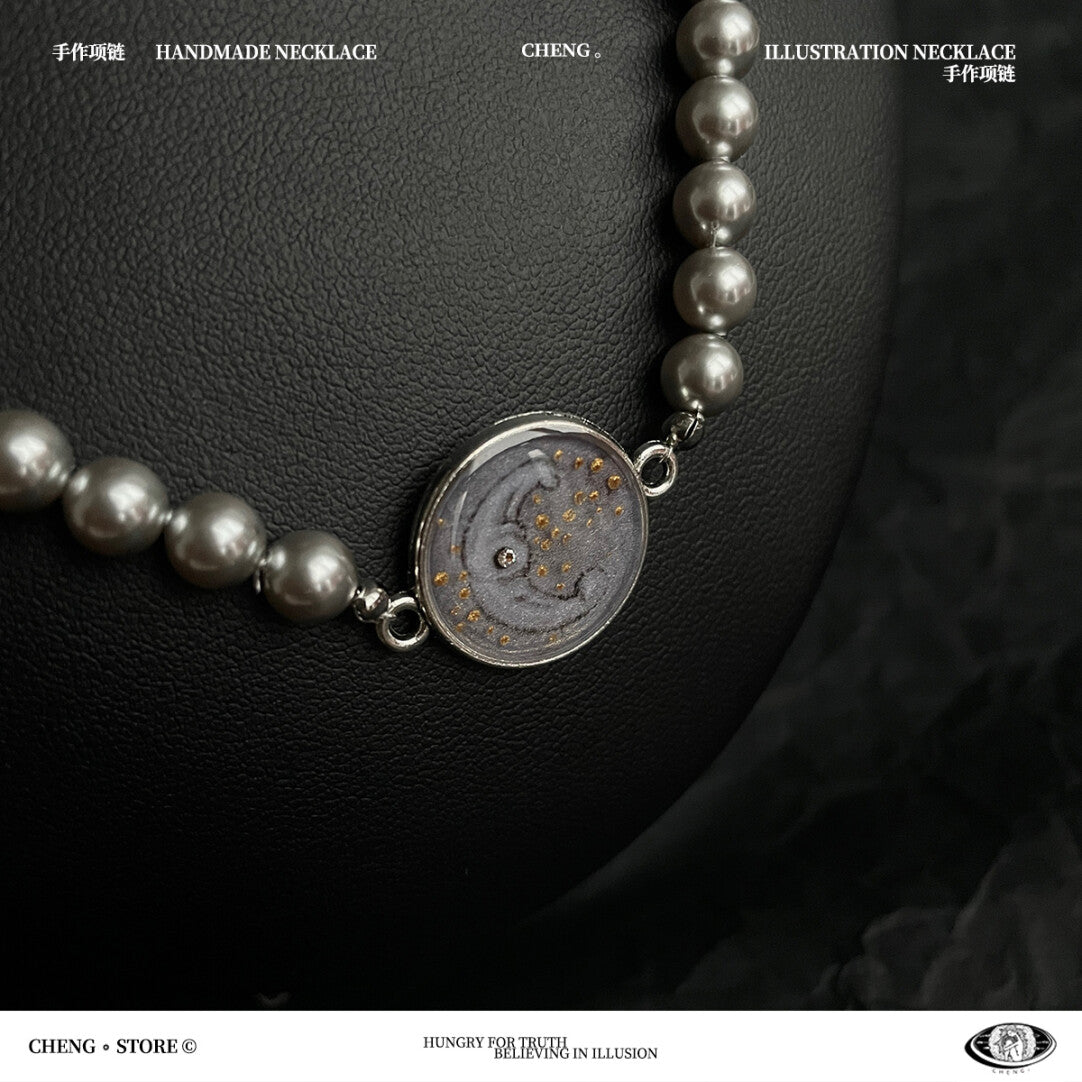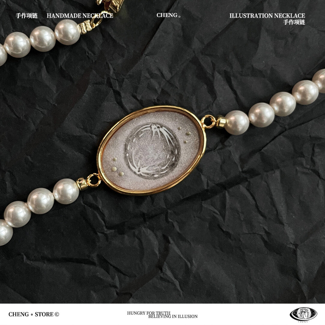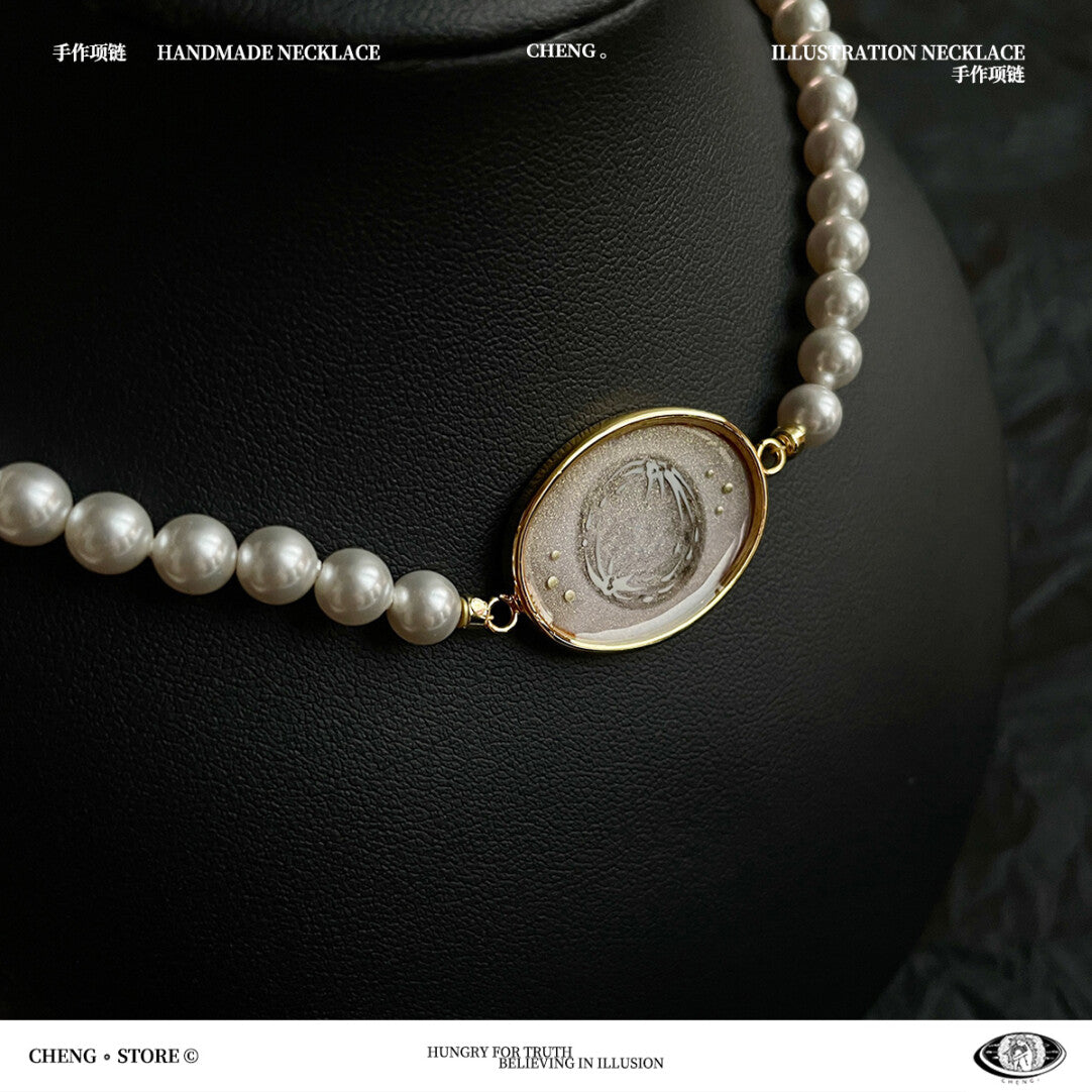 The Handmade Ink Painting Elements Pearl Choker blends delicate artistry with classic elegance. Featuring a pendant illustrated by the artist herself and paired with luminous pearls, this choker transforms original ink painting into a wearable statement. Refined yet expressive, it’s perfect for those who appreciate artistic, unique jewelry that adds a sophisticated touch to both everyday wear and special occasions.