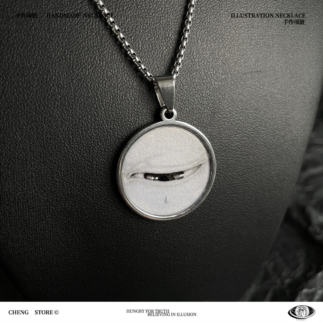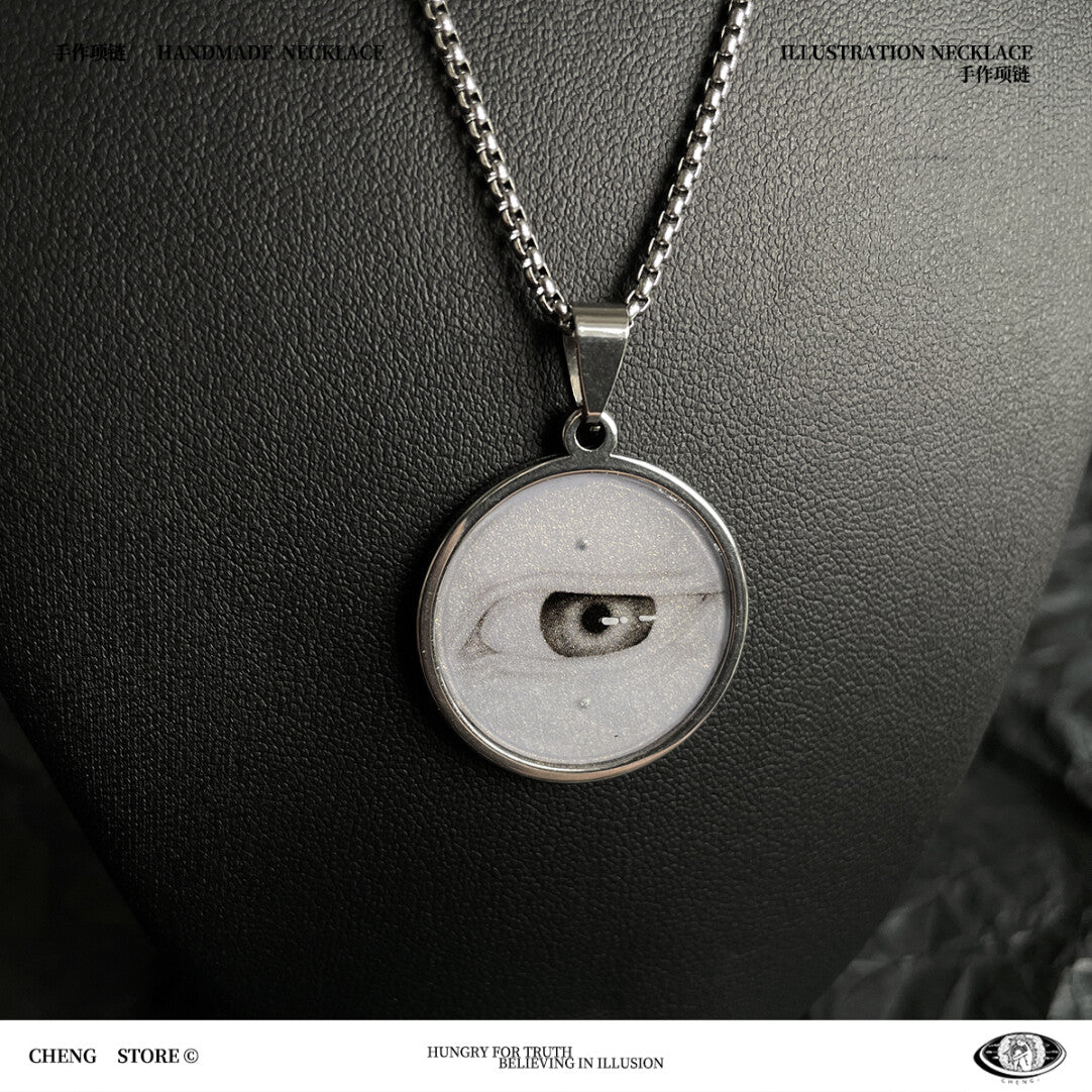 The Handmade Painting Elements Round Necklace features a pendant illustrated by the artist herself, incorporating captivating eye motifs for a symbolic and artistic touch. Each piece is truly unique, turning original artwork into a wearable statement. Bold and expressive, this artistic necklace is perfect for those who love jewelry that conveys individuality, creativity, and a thoughtful, visually striking design.