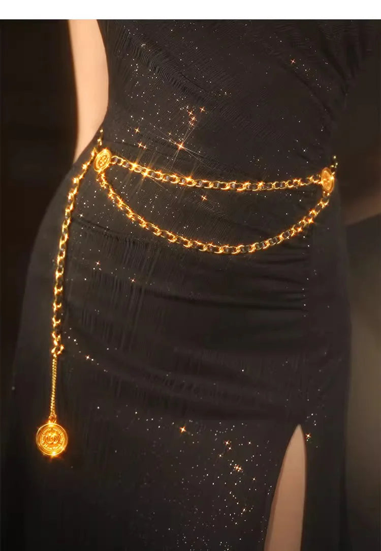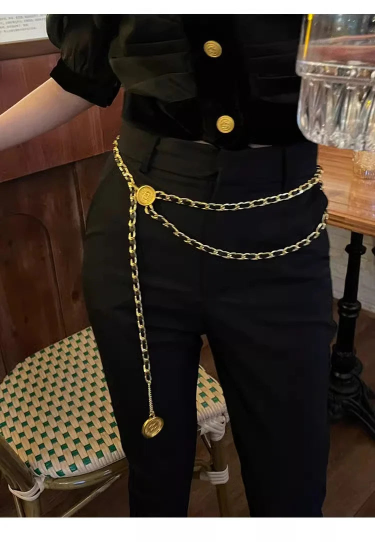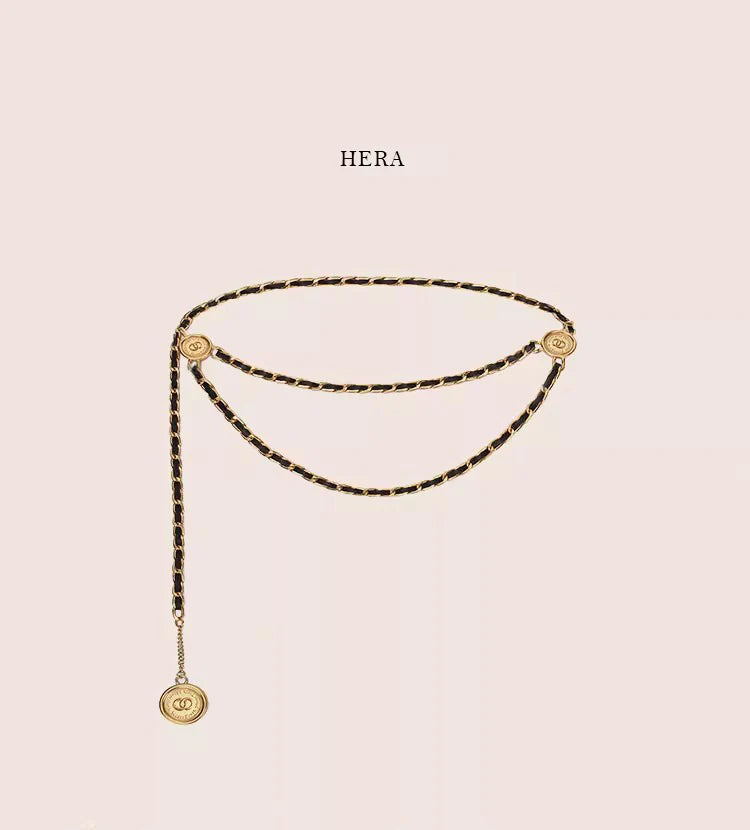 Up your style game with the Hera Waist Chain! This must-have accessory features a vintage design in black and golden, adding a touch of elegance to any outfit. Crafted with high quality materials, it's the perfect way to make a statement and stand out from the crowd. (Hot tip: It also doubles as a unique belt!)