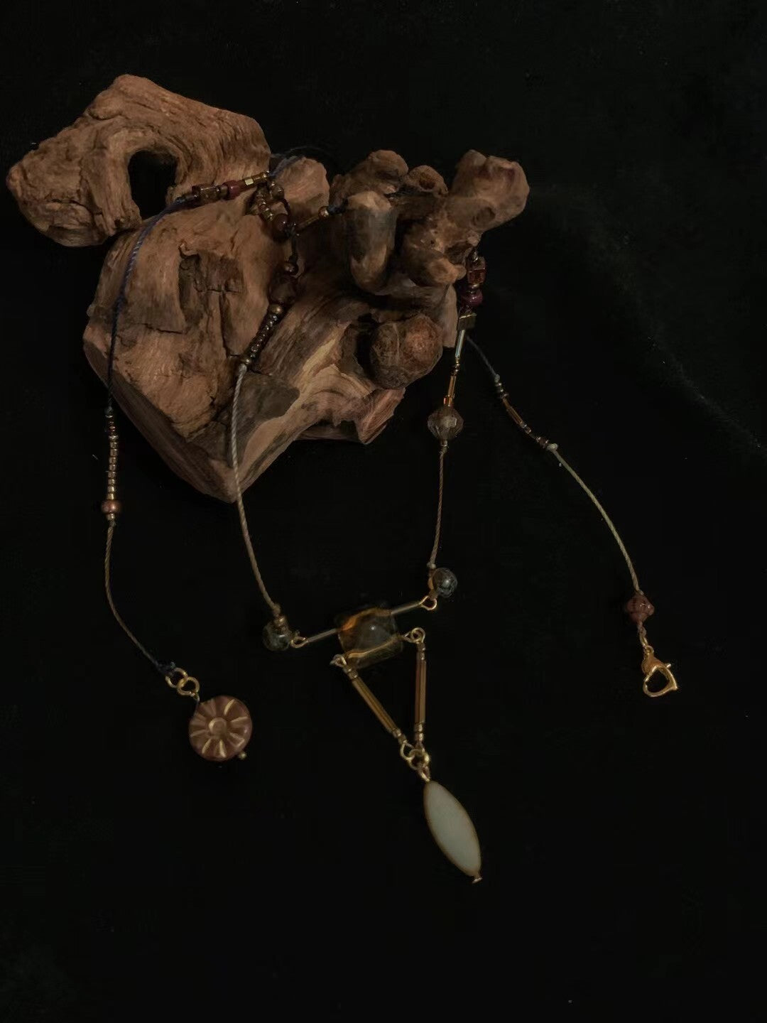 Inspired by Medea (1969), this necklace channels a vintage spirit with golden tones that evoke the sun’s distant, exotic energy. Subtle Egyptian elements and echoes of ancient civilizations bring a sense of mystique and timeless power. Designed for stacking or wearing alone, the beaded composition adds texture and warmth — a modern tribute to solar strength and old-world allure.