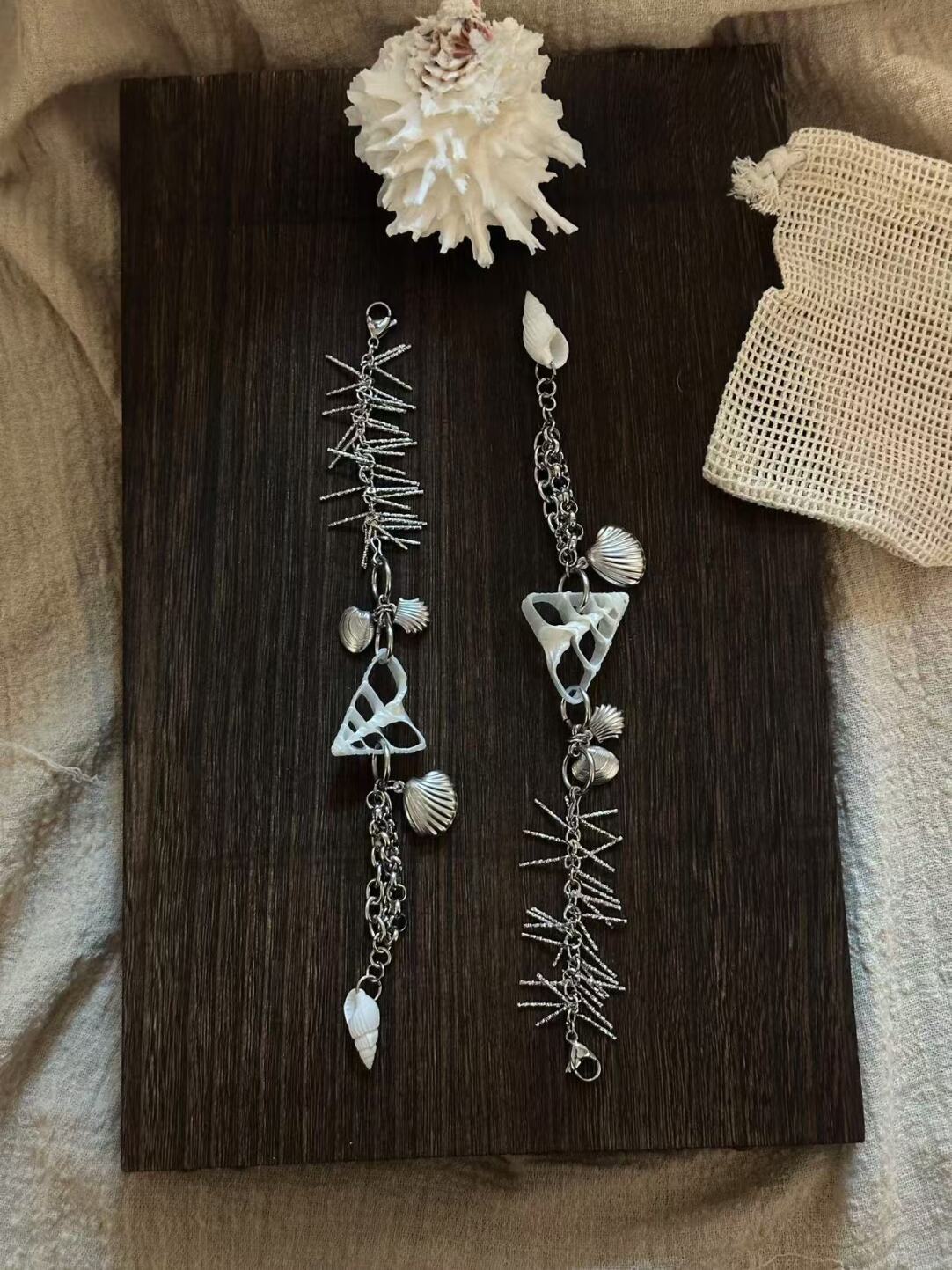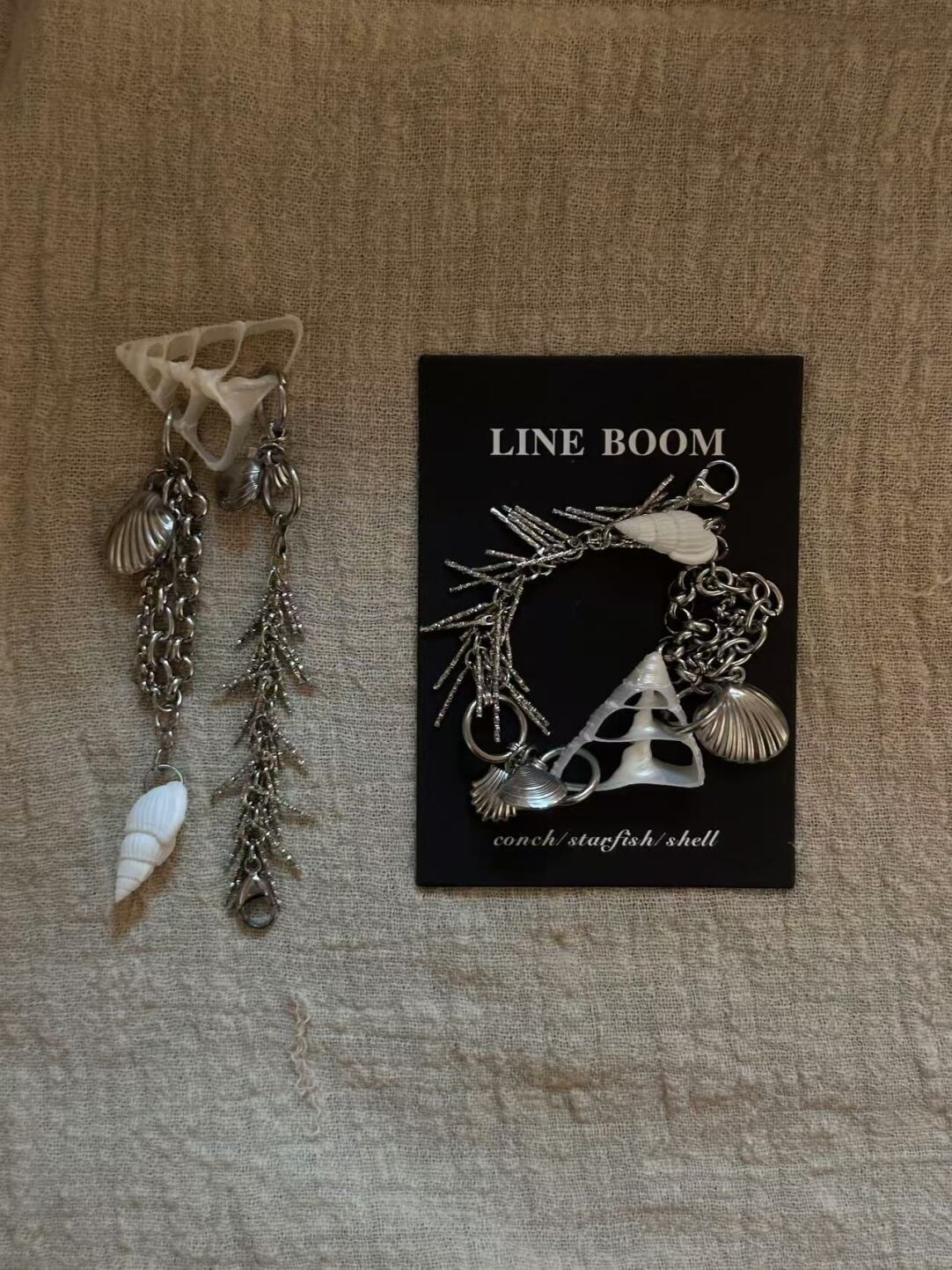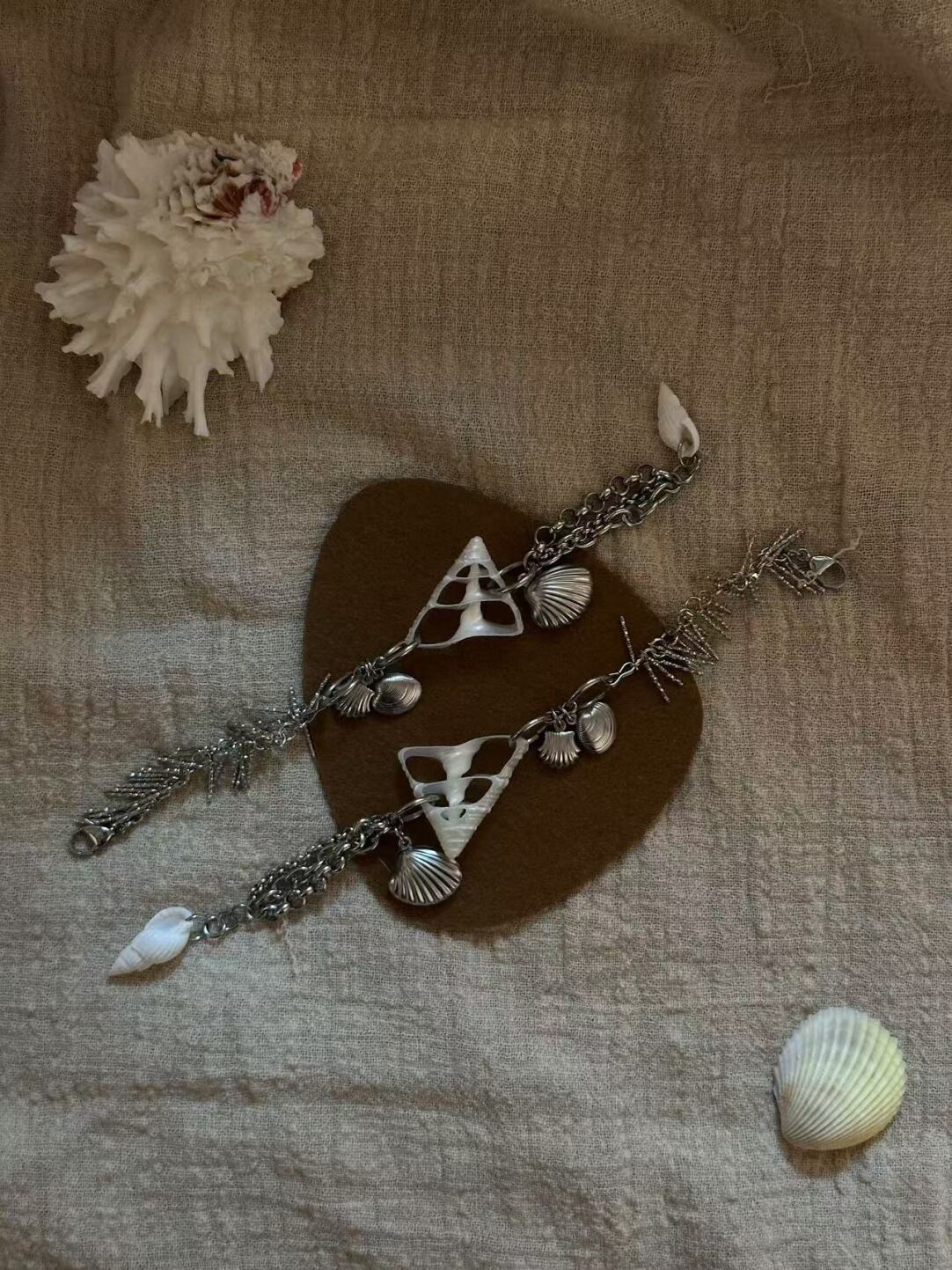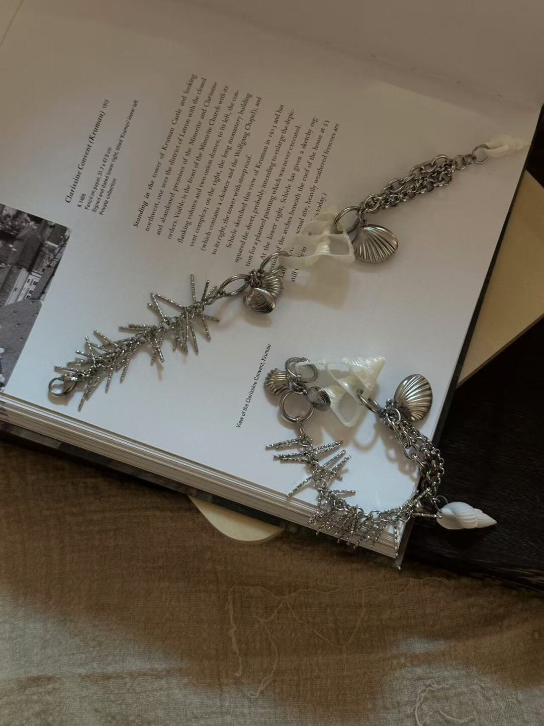 Crafted from lightweight titanium steel and an iridescent conch shell pendant, this bracelet mimics the soft, layered appearance of a mousse cake. The conch’s natural shimmer and the metal’s sleek finish create a sweet yet sophisticated look, perfect for daily wear or adding a whimsical touch to casual outings.