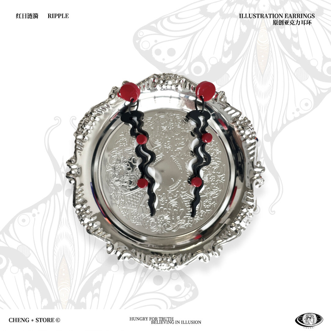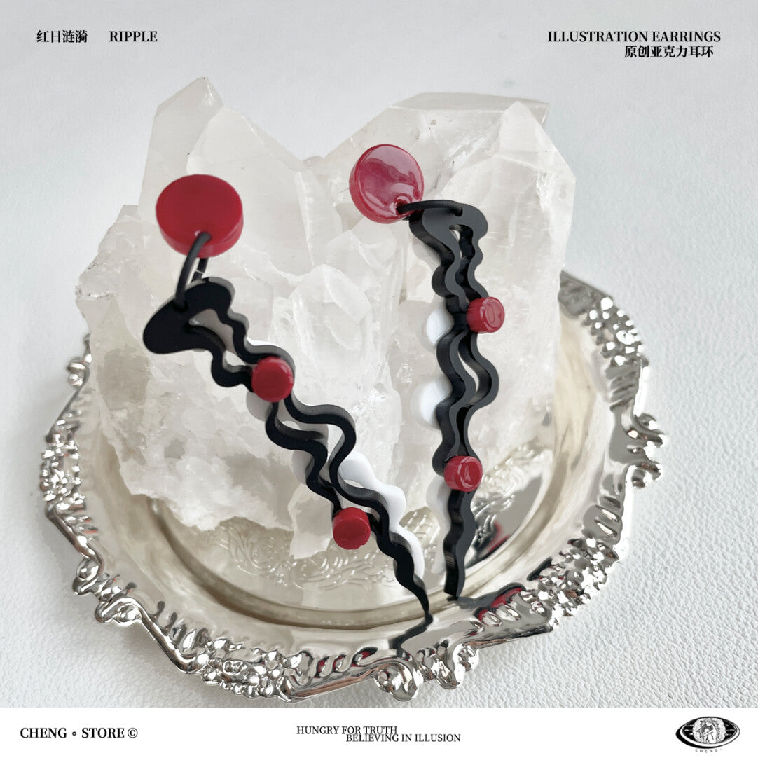 The Red Sun Ripples Acrylic Earrings capture the poetic beauty of sunlight reflecting on water, translating the gentle ripples of a lake under a red sun into a whimsical, artistic design. Crafted in vibrant acrylic, they are lightweight yet visually striking. Unique and expressive, these statement earrings blend creativity and charm, perfect for those who love jewelry that tells a story and stands out with playful, artistic flair.