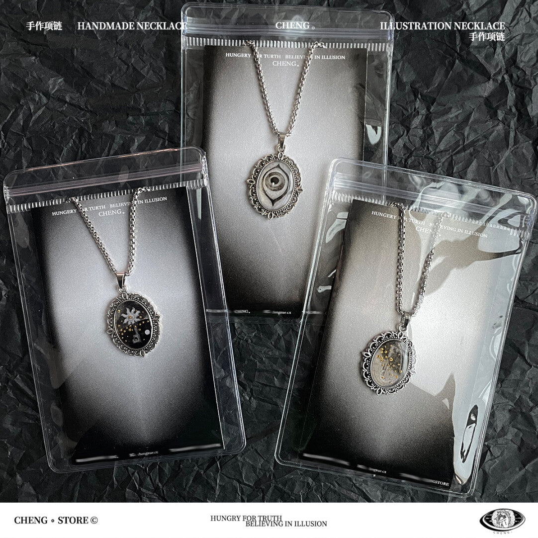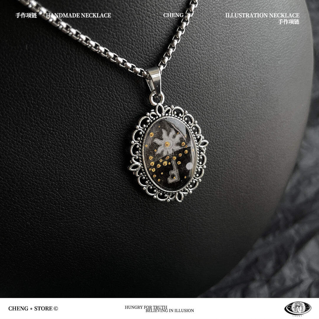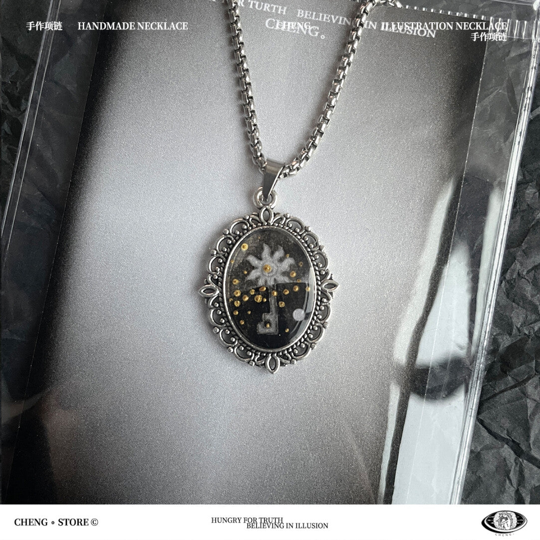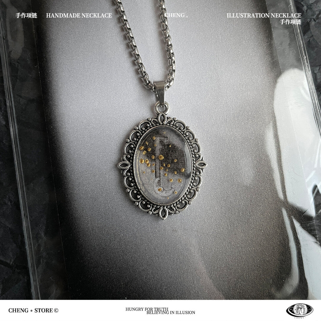 The Vintage Handmade Painting Elements Necklace features a pendant illustrated by the artist herself, turning original artwork into a timeless piece of wearable art. With a vintage-inspired tone and expressive design, each necklace is truly unique. Artistic and bold, this statement necklace blends creativity with nostalgic charm, making it perfect for those who appreciate individuality, storytelling, and art-driven jewelry with a vintage soul.